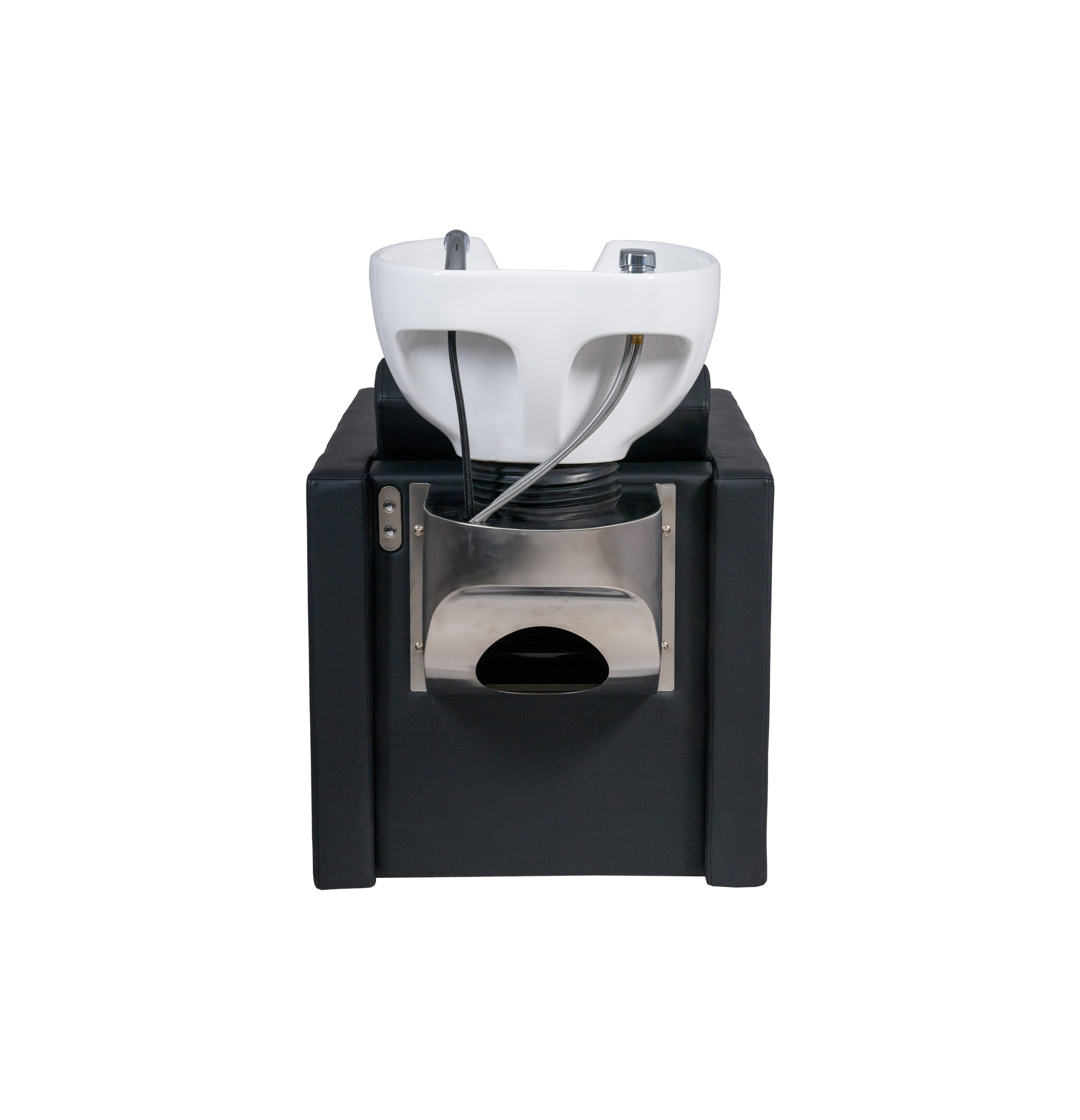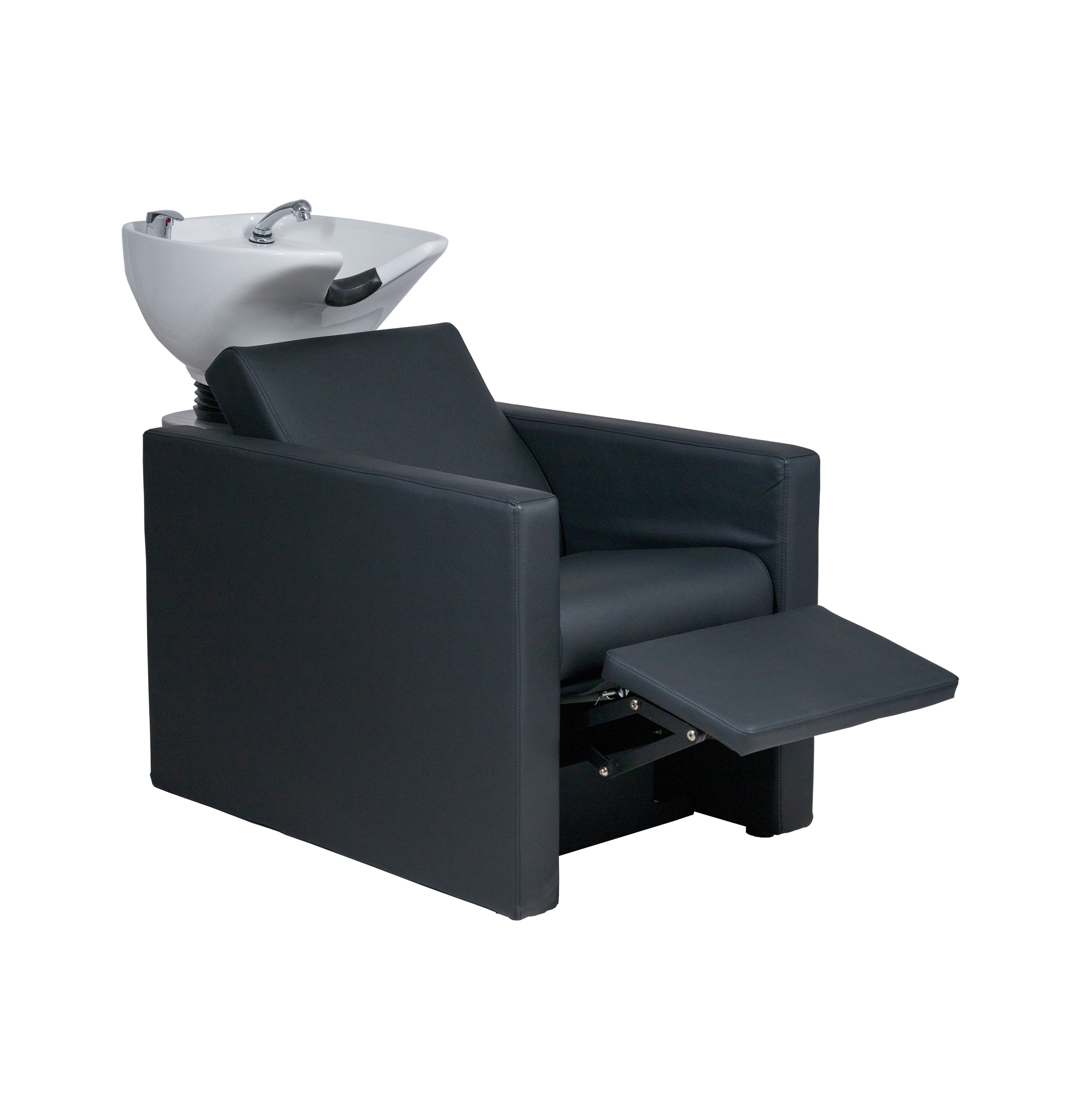 Fauteuil avec bac à shampooing avec repose-pieds électrique pliable, style chaise-longue avec panneau de commande intégré, idéal pour le confort du client lors de traitements plus longs. Le meuble présente une structure intérieure métallique. Le siège et le dossier intègrent des ressorts pour plus de confort.Rembourrage supplémentaire sur la région lombaire.Cuvette en céramique blanche ou noire profonde et basculante. Robinetterie chromée de qualité avec tuyauterie en acier inoxydable. Douche chromée avec tuyauterie en polyamide. Système de drainage en acier inoxydable. Dossier amovible sans outils pour une installation facile. Revêtement en noir de haute qualité.