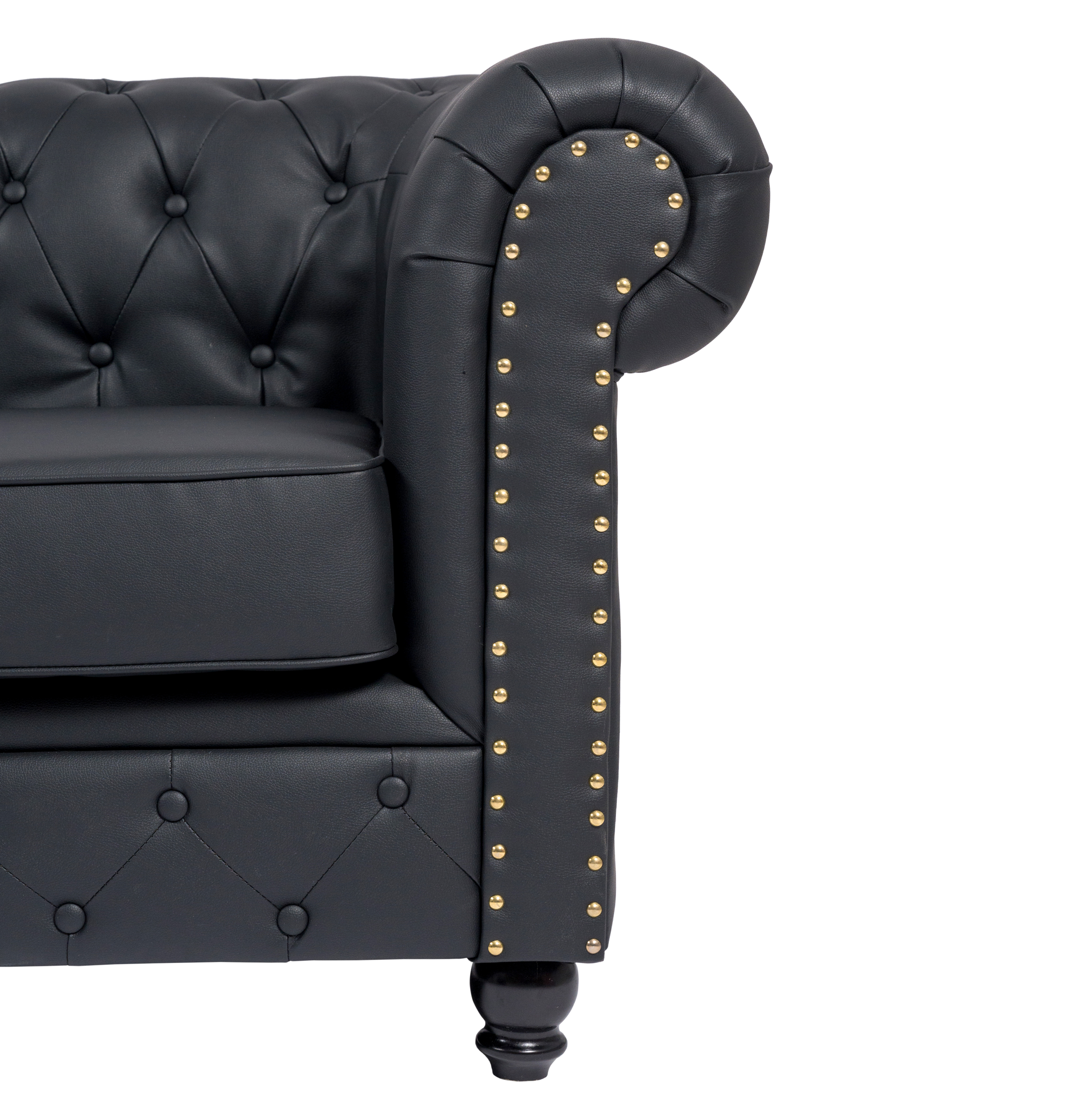 Le canapé Chesterfield double est parfait pour les salles d’attente de salons de coiffure et instituts de beauté.